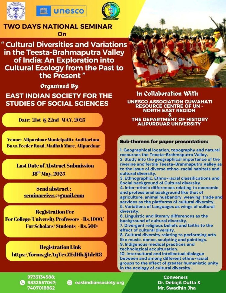 Organized by THE EAST INDIAN SOCIETY FOR THE STUDIES OF SOCIAL SCIENCES in collaboration with UNESCO ASSOCIATION GUWAHATI, RESOURCE CENTRE OF UN – NORTH EAST REGION & THE DEPARTMENT OF HISTORY, ALIPURDUAR UNIVERSITY.